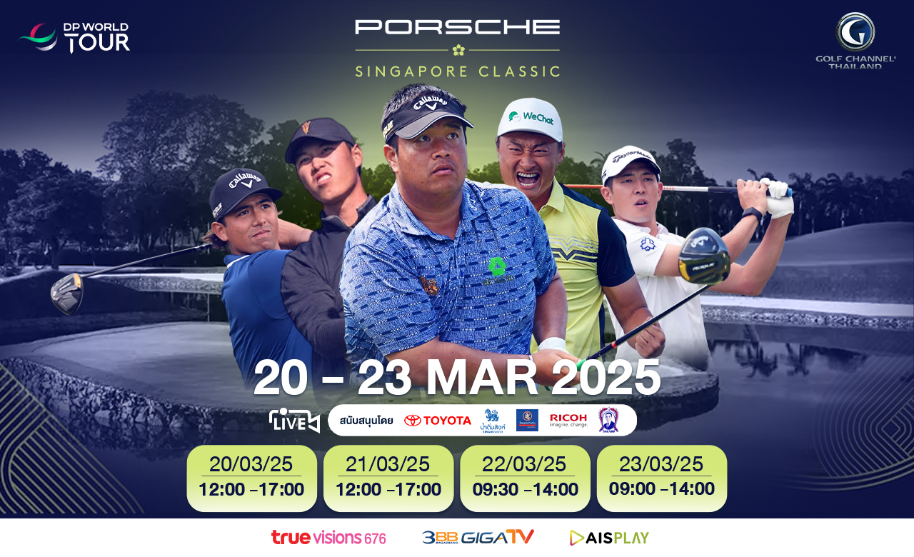 ติดตามถ่ายทอดสดการแข่งขันกอล์ฟ DP World Tour รายการ Porsche Singapore Classic ที่สนาม Laguna National Golf Resort Clubb ประเทศสิงคโปร์ ชิงเงินรางวัลรวม $2,500,000 หรือประมาณ 84 ล้านบาท