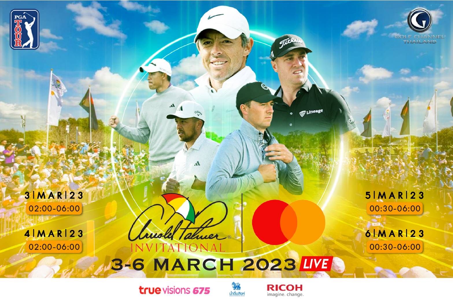 ศึกกอล์ฟ PGA Tour รายการจากตำนานนักกอล์ฟ Arnold Palmer Match อุ่นเครื่องก่อน The Player Championship ที่รวมนักกอล์ฟ 120 อันดับผู้เล่นชั้นนำ ถ่ายทอดสดเต็มอิ่ม 4 วัน เพื่อคอกีฬากอล์ฟตัวจริง มารวมเชียร์นักกอล์ฟในดวงใจของคุณไปพร้อมกัน กับเงินรางวัลที่เพิ่มสูงถึง 20 ล้านเหรียญสหรัฐ ลุ้นแบบติดขอบสนาม Bay Hill Club Florida สหรัฐอเมริกา ในศึก PGA Tour Arnold Palmer Invitational