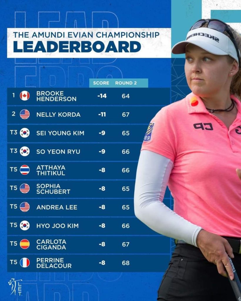 “Brooke Henderson” จากแคนาดา เร่งเครื่อง เก็บเพิ่ม 7 อันเดอร์พาร์ 64 ขยับขึ้นเป็นผู้นำเดี่ยว ในศึกเมเจอร์ The Amundi Evian Championship ในรอบที่ 2