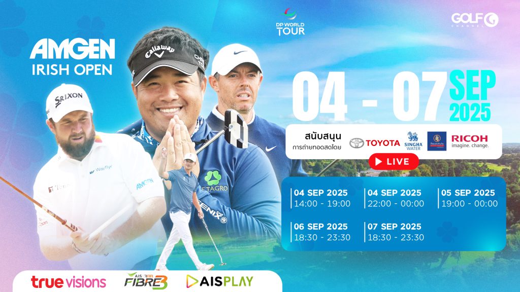 โปรแกรมถ่ายทอดสดการแข่งขันกอล์ฟ DP World Tour รายการ Amgen Irish Open ระหว่างวันที่ 4 – 7 กันยายน 2568