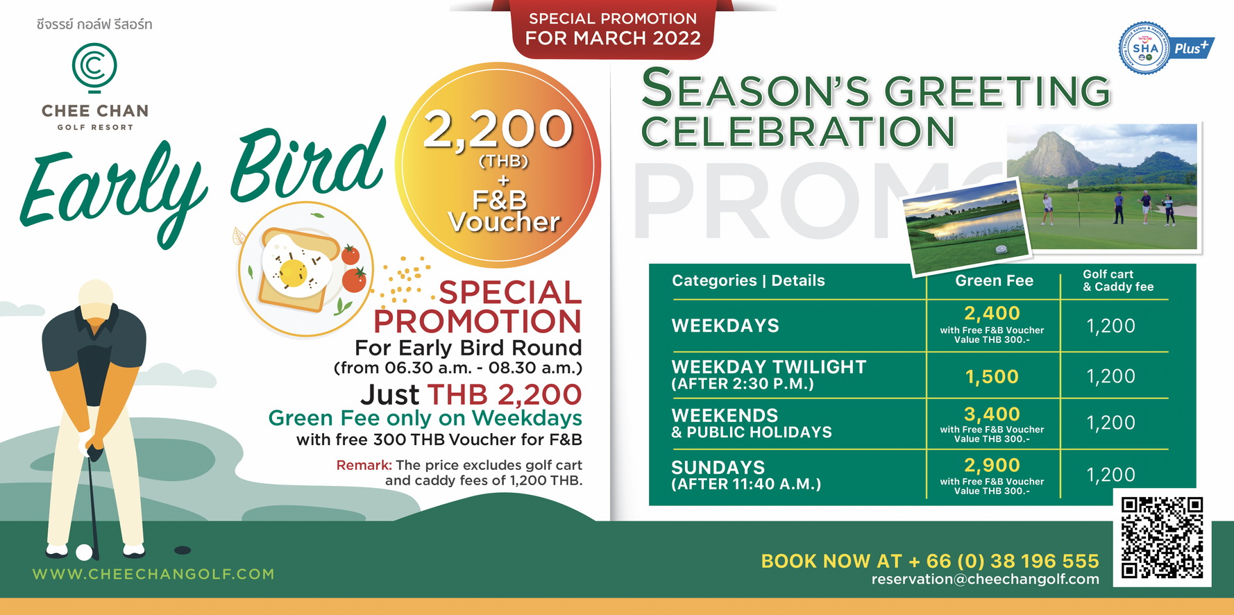 Special Price THB 2,200.-* (Green Fee + F&B Voucher THB 300.-)